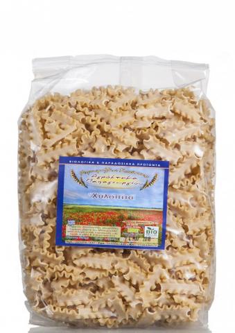 Βιολογικό προϊόν, πιστοποιημένο από την εταιρία BIO HELLAS. Συστατικά: Σκληρό σιτάρι (βιολογικής καλλιέργειας), πρόβειο γάλα (βιολογικής κτηνοτροφίας), 2 αυγά ανά κιλό.